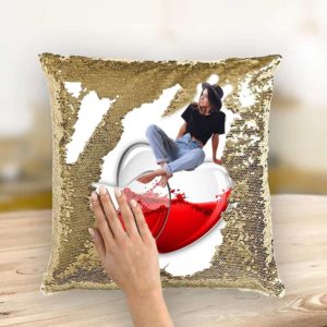 Personalised Photo Sequin Cushion ▷ Heart Shape Magic Pillow